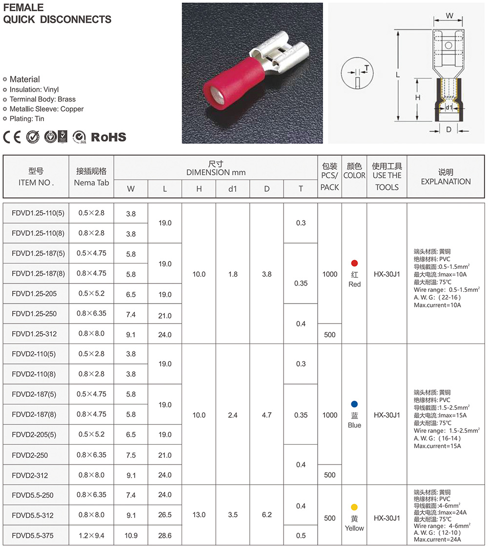 圓形預(yù)絕緣端頭(RV型)