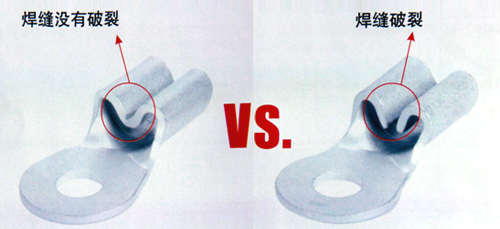 七、公司擁有精湛的焊接技術(shù),精選優(yōu)質(zhì)焊接材料,在裸端子尾部接縫處實(shí)施銀焊,生產(chǎn)出高品質(zhì)的焊接端子,確保壓著后不會(huì)產(chǎn)生破裂,及時(shí)在惡劣的使用環(huán)境下,仍能擁有強(qiáng)勁牢靠的拉拔力,且經(jīng)過(guò)低溫?zé)崽幚?,以增?qiáng)抗拉強(qiáng)度并確保物理性能指標(biāo)。 |